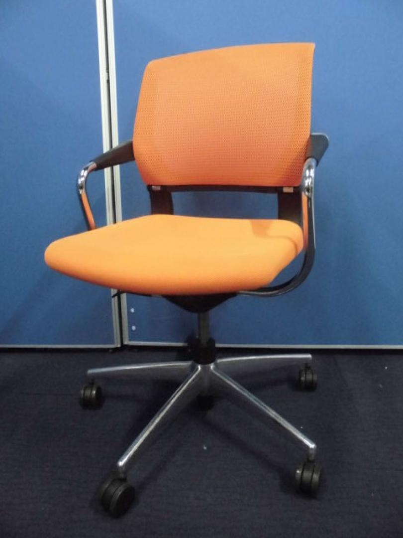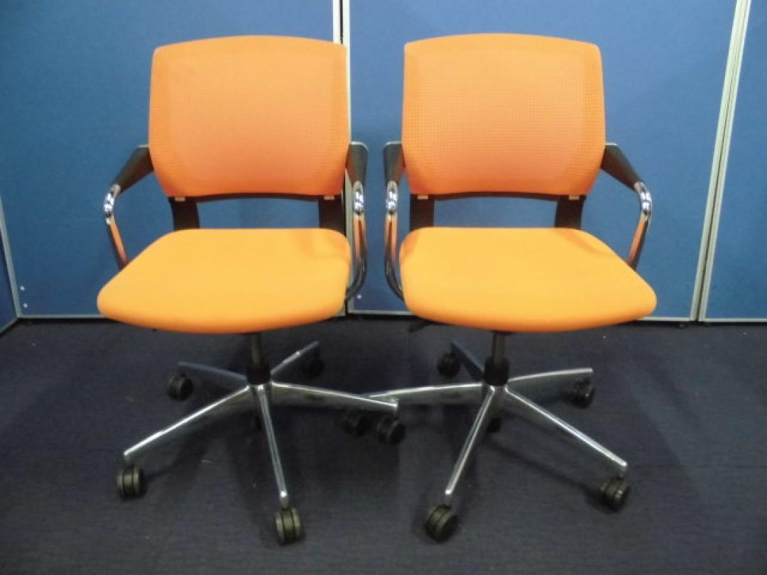 【オシャレなミーティングチェア3脚セット】コクヨ|サテリテ(回転脚タイプ)|オレンジ【メッシュチェア】【セット商品】- 立川・八王子店