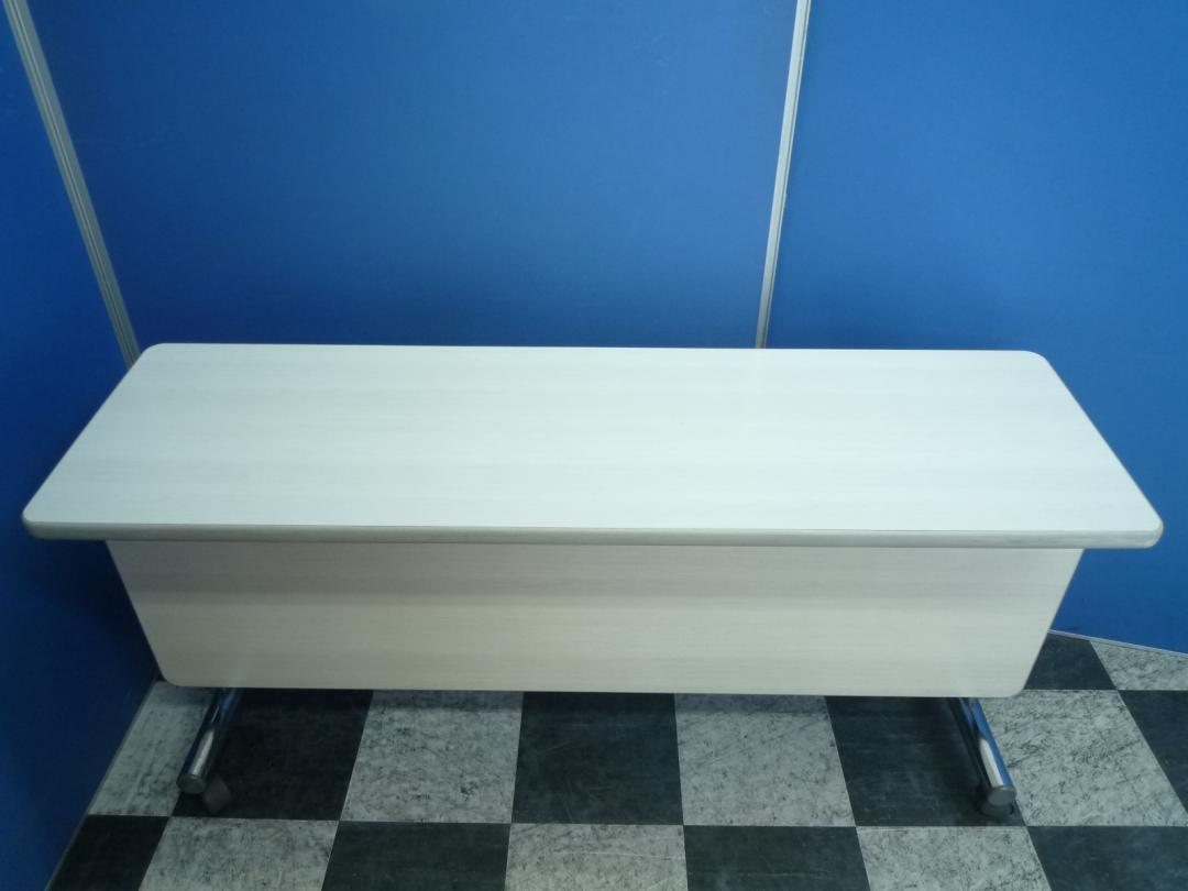 【おつとめ品】うっすら木目のスタックテーブル■足元を隠す幕板付き■横幅1500mm■キャスター脚付き■在庫調整の為特別価格!- 埼玉本店