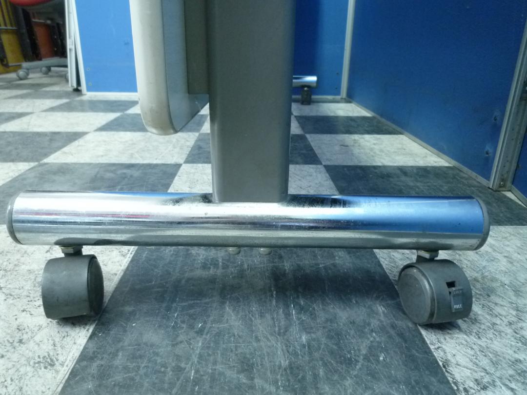 - 一部不具合あり天板歪み、アジャスター無し、キャスター使用不可ようなそのテーブルの本来の効用を果たすための機能以外の一部が使用不可な状態。(例、キャスターロッ ク機能使用不可、棚板無し等がある。)