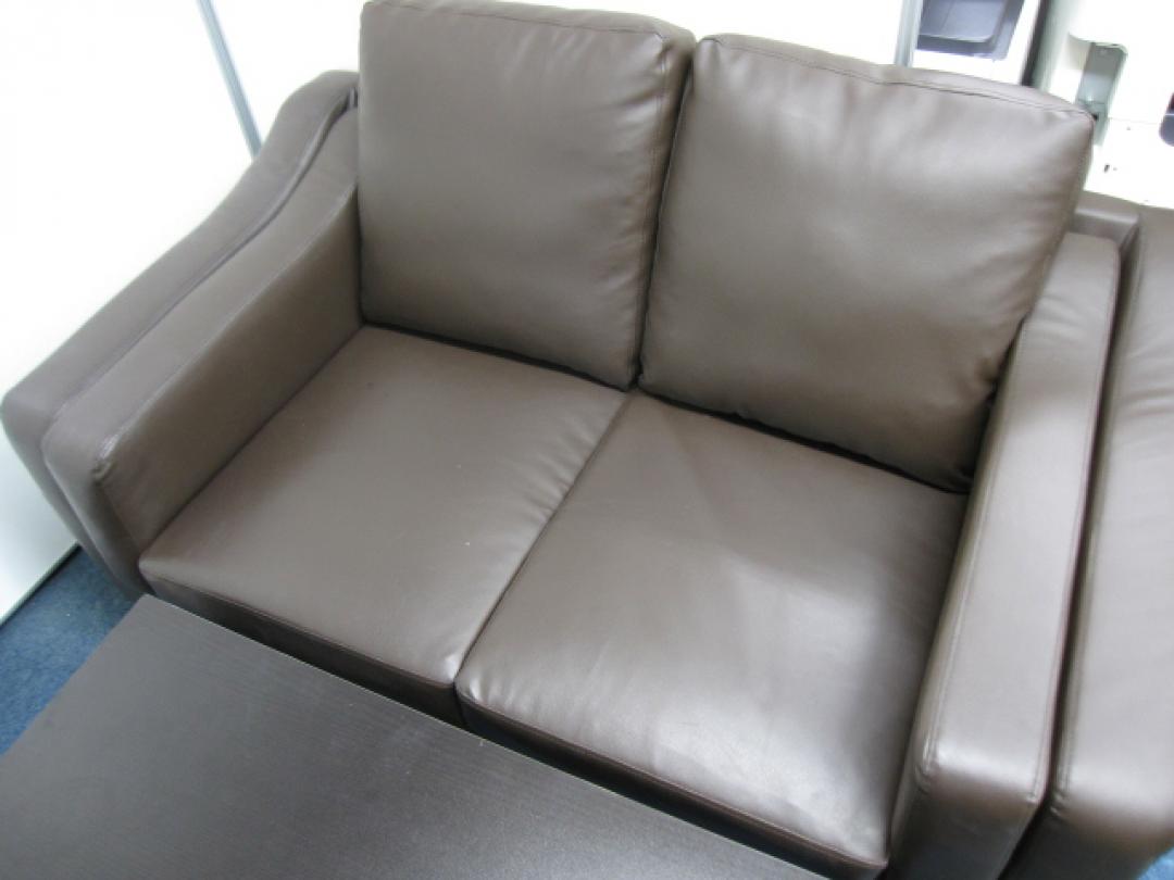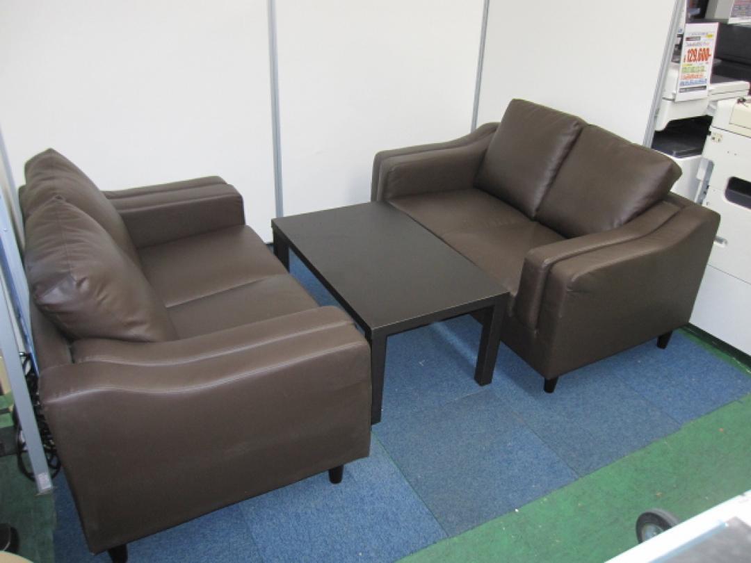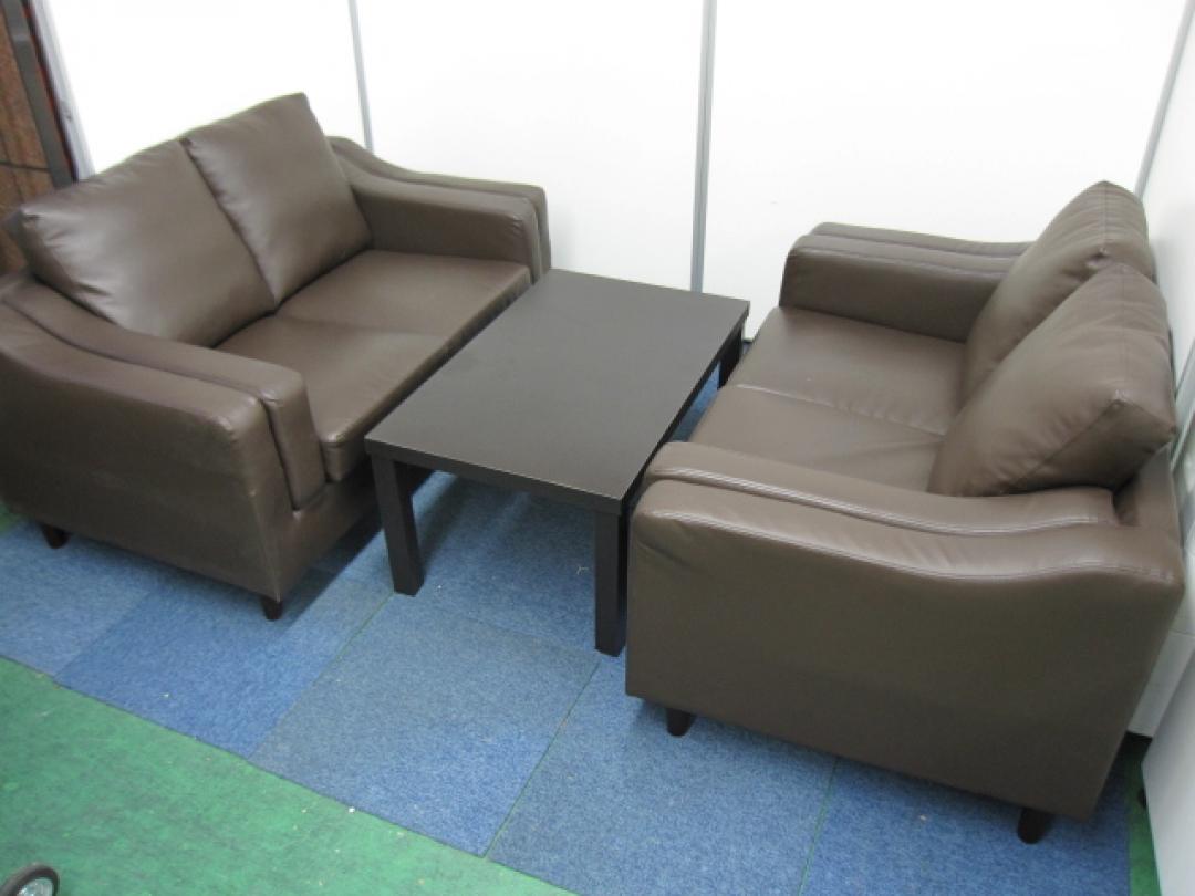 【応接用ソファー】高級感あふれるレザー 4人用 応接セット 入荷 ※座面や背もたれの取り外し可能 ※センターテーブルの角にテープ剥がれがある為 かなりお安くなっております。- 品川・三田店