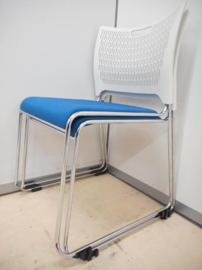 【2脚セット】スタッキングチェア■ホワイト&ブルー【状態良好品】- なんば日本橋店