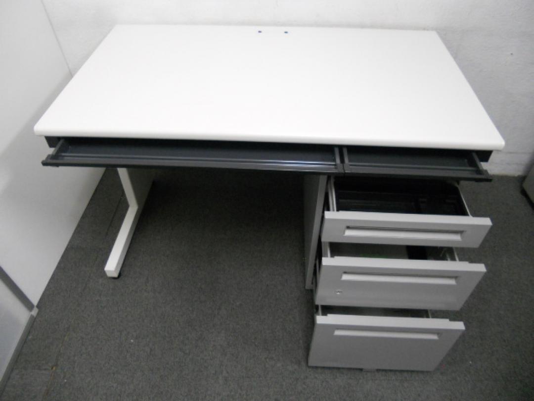 ■プラス 平机(W1200mm)+ウチダ 3段ワゴンセット 【セット商品】【中古オフィス家具】【新宿店】- 在庫数