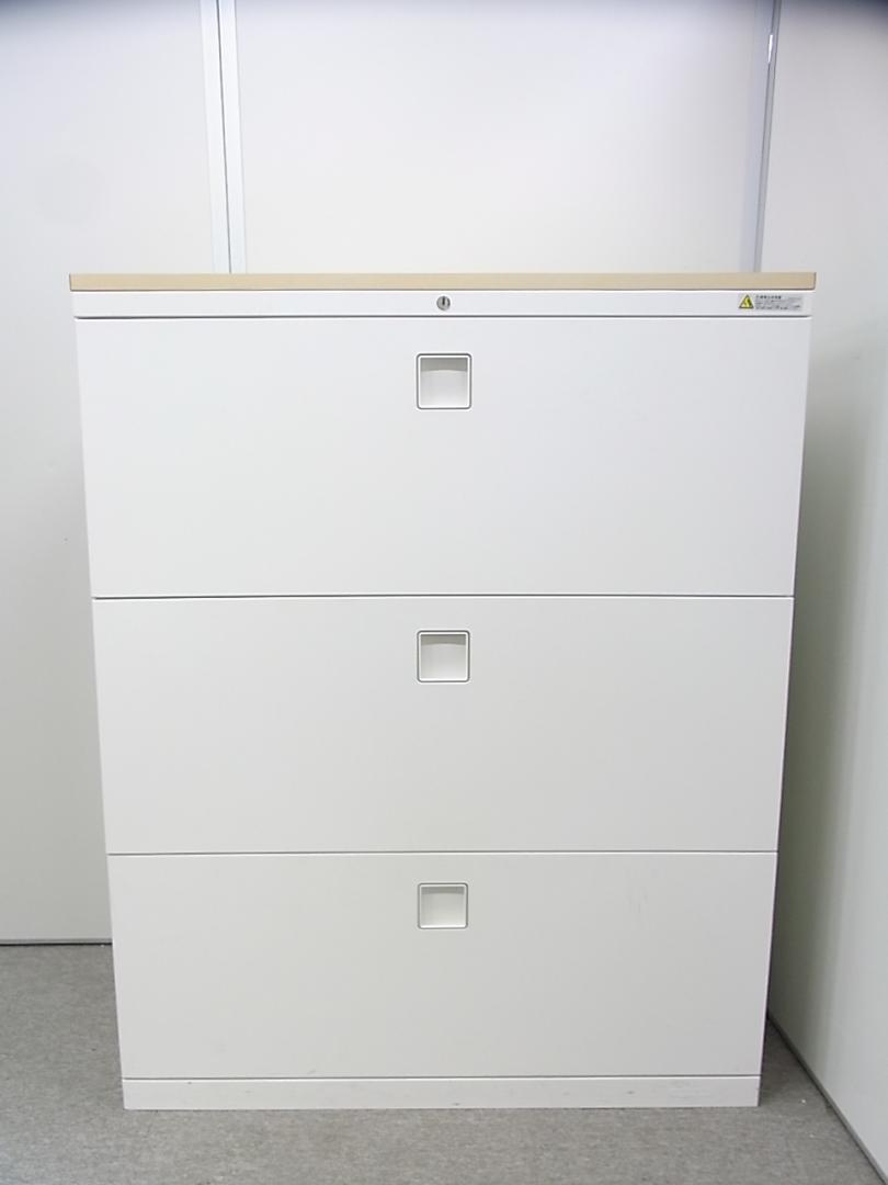 【ファイル収納にオススメ!高品質で使いやすい人気シリーズの3段ラテラル書庫!】■オカムラ(okamura)製 レクトラインシリーズ 3段ラテラル書庫 ローキャビネット H1100㎜ ■ホワイト ■シリンダー鍵 ■天板付き(天板:ホワイト) ※日焼け有