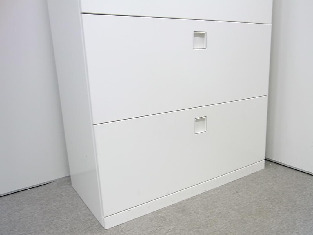 【オフィスの必需品!大容量の三段キャビネット!】■オカムラ(okamura)製 レクトラインシリーズ 3段ラテラル ローキャビネット ■ベース付 ■シリンダー錠 ■ホワイト 【弊社使用欄:A01037187】