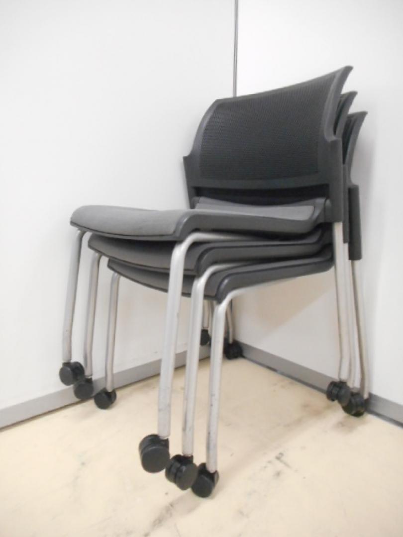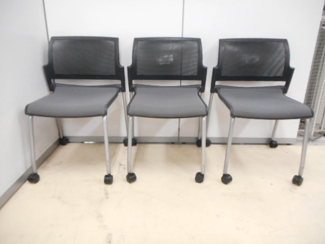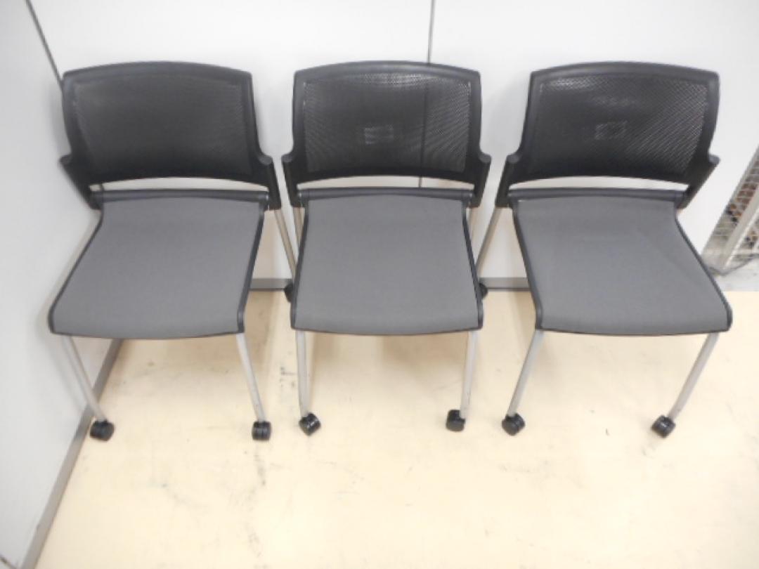 【3脚セット】スタッキングチェア■グレー・平行スタックもできて収納に便利です!- なんば日本橋店