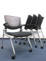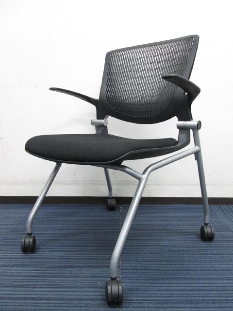 【2010年製】4脚セット|名作グラータシリーズ|キャスター付き|座面跳ね上げ式の平行スタックタイプ【中古オフィス家具】【中古会議椅子】【セット商品】- 日本橋店