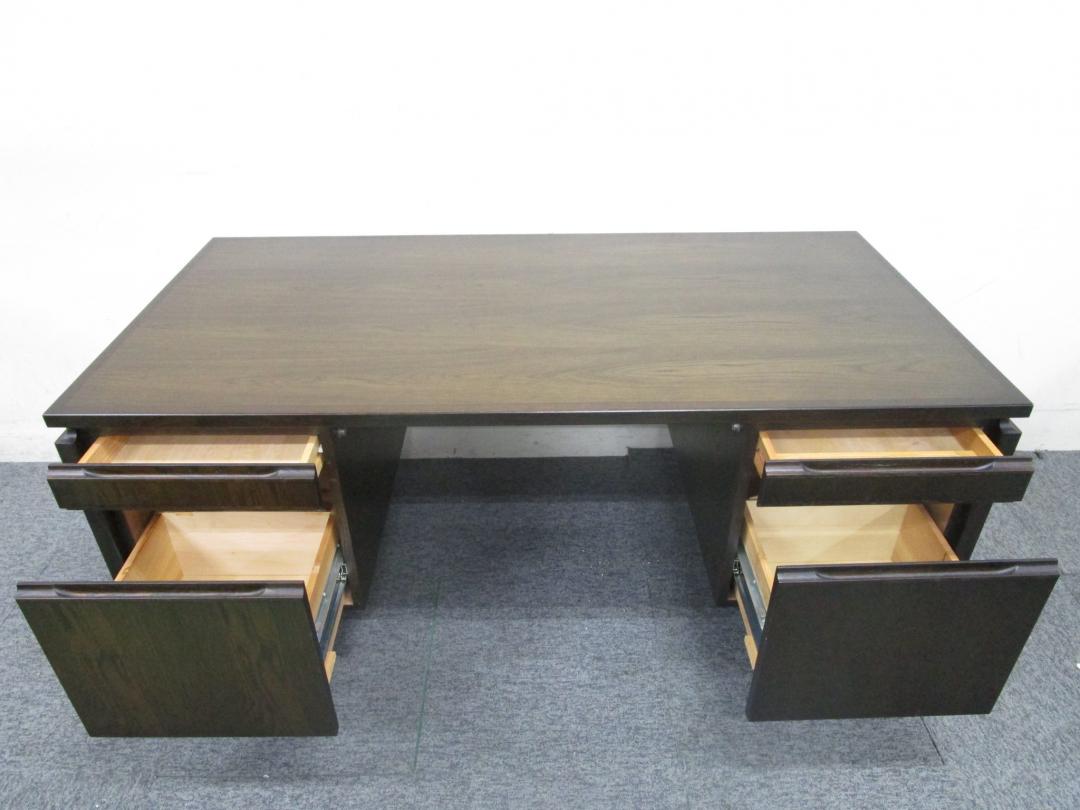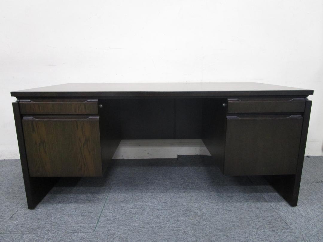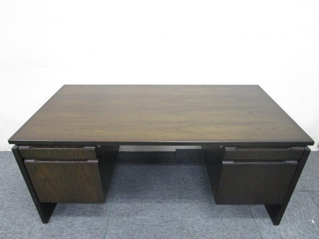 【役員用 木製 両袖机】【オカムラ製 エグゼクティブデスク ダークオーク】- 池袋店