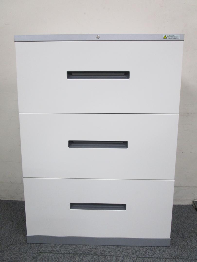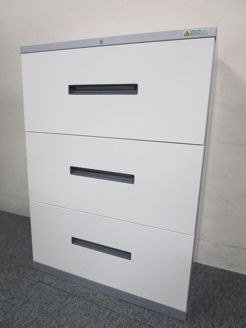 【人気のホワイト色】【幅800 奥行400のスリムタイプ】【オカムラ製 3段ラテラル書庫】- 池袋店