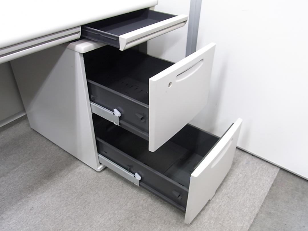 - 袖机のワゴンは、最下段がロング引出しになっており、従来より収納力120%アップ。