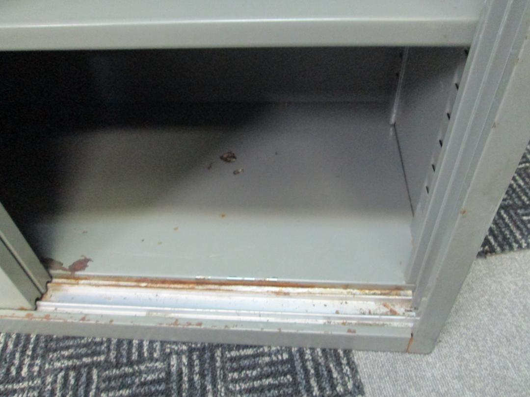 - 一部不具合ありそ引出の開閉不可、施錠不可、棚板無しといったの書庫の本来の効用を果たすための機能以外の一部が使用不可(例、扉、引出の開閉がしづらいなどがある。 )