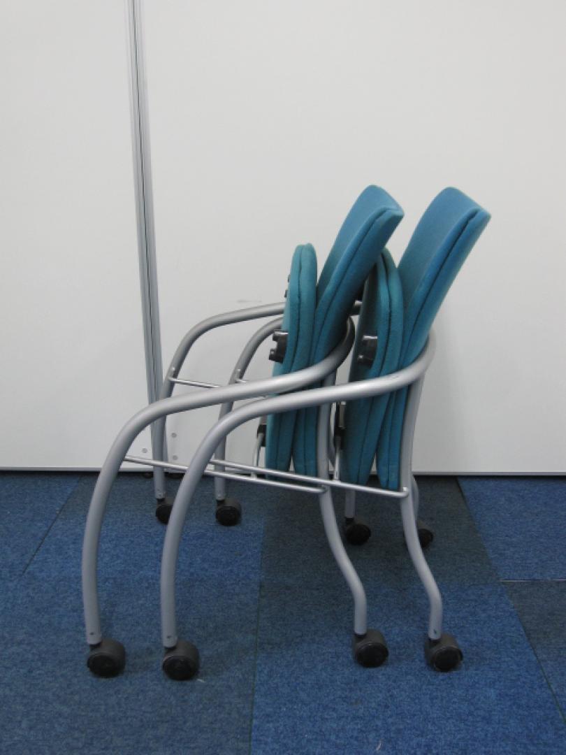 【ミーティング用チェア】ネスティングタイプ 鮮やかなグリーン色 2脚入荷 【オフィスチェア】- 品川・三田店
