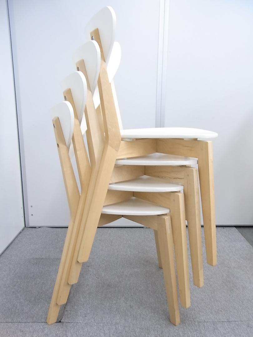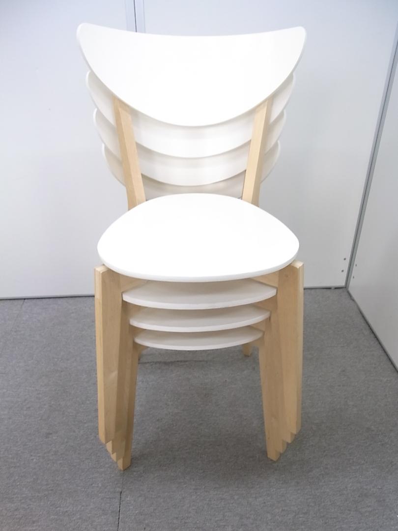 【お洒落なダイニングチェア】ホワイト色 木製■重ねて収納可能■快適な座り心地- 在庫数