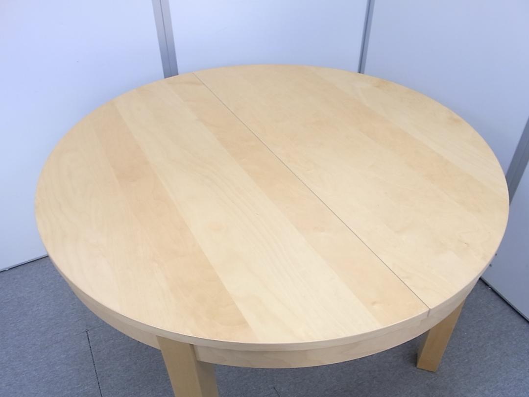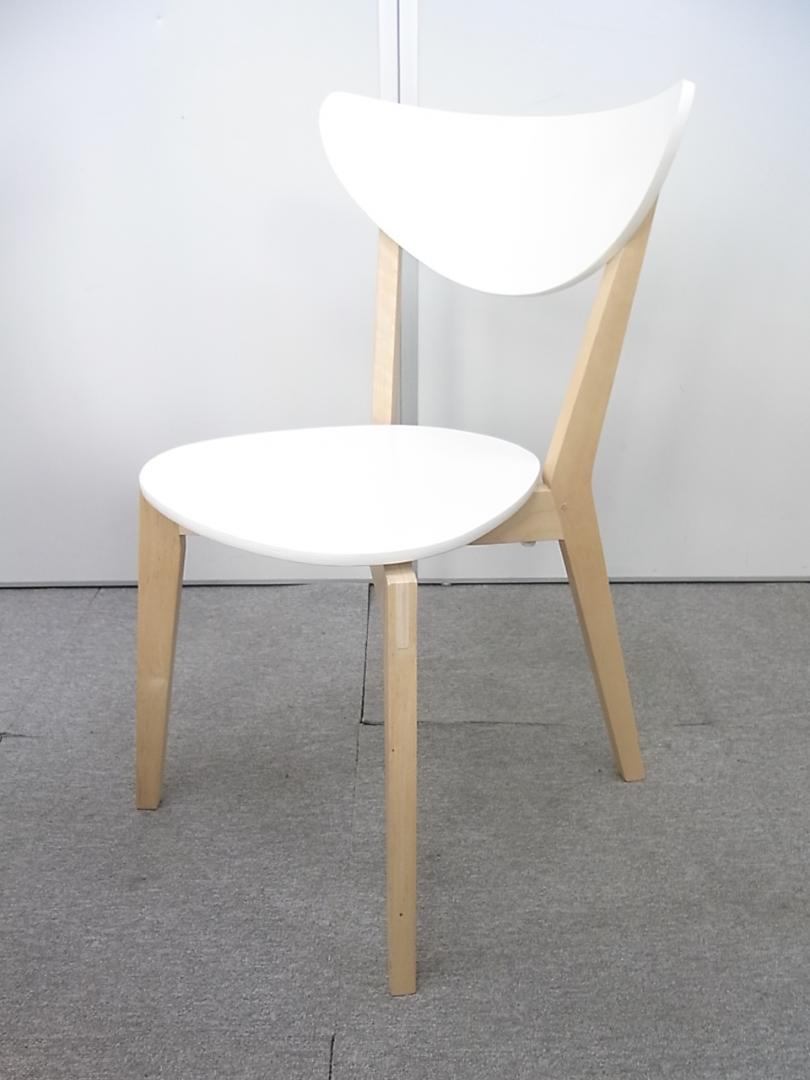 木製の温かみある丸テーブルとホワイトのダイニングチェア