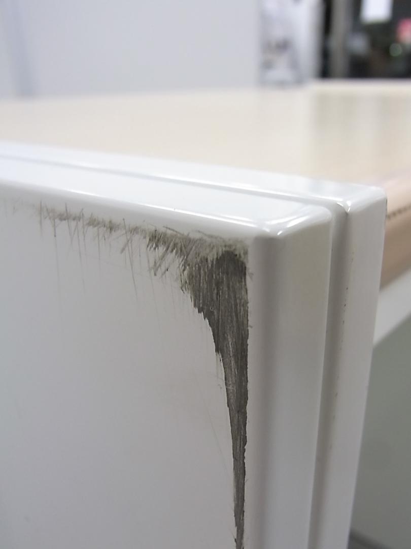 - あり黄ばみ・変色が広い範囲にうっすらある、または濃い黄ばみ・変色が一部ある。(例、天板、正面、背後、サイド部分にある。)