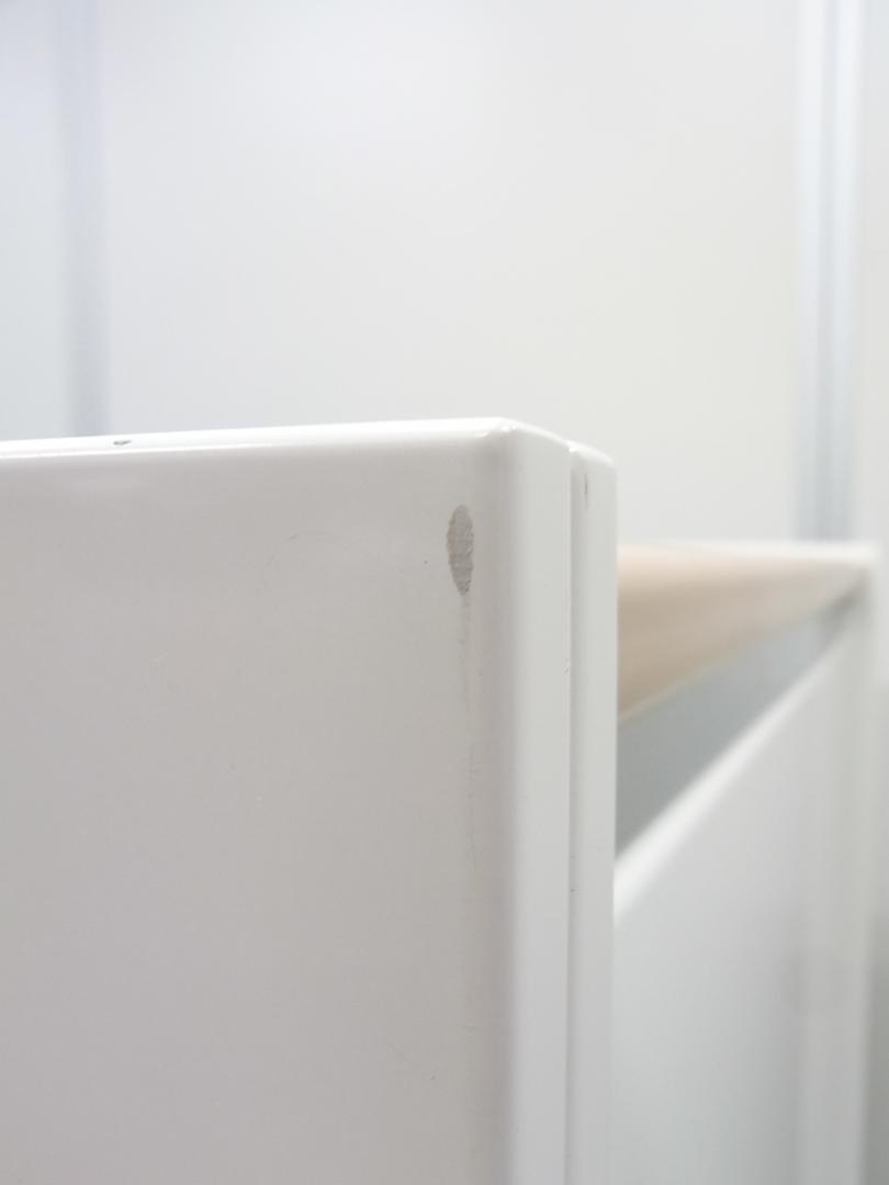 - 一部不具合あり天板歪み、引出開閉不可、アジャスター無し、施錠不可のようにそのカウンターの本来の効用を果たすための機能以外の一部が使用不可な状態。(例、引出が 開閉しづらい等がある。)