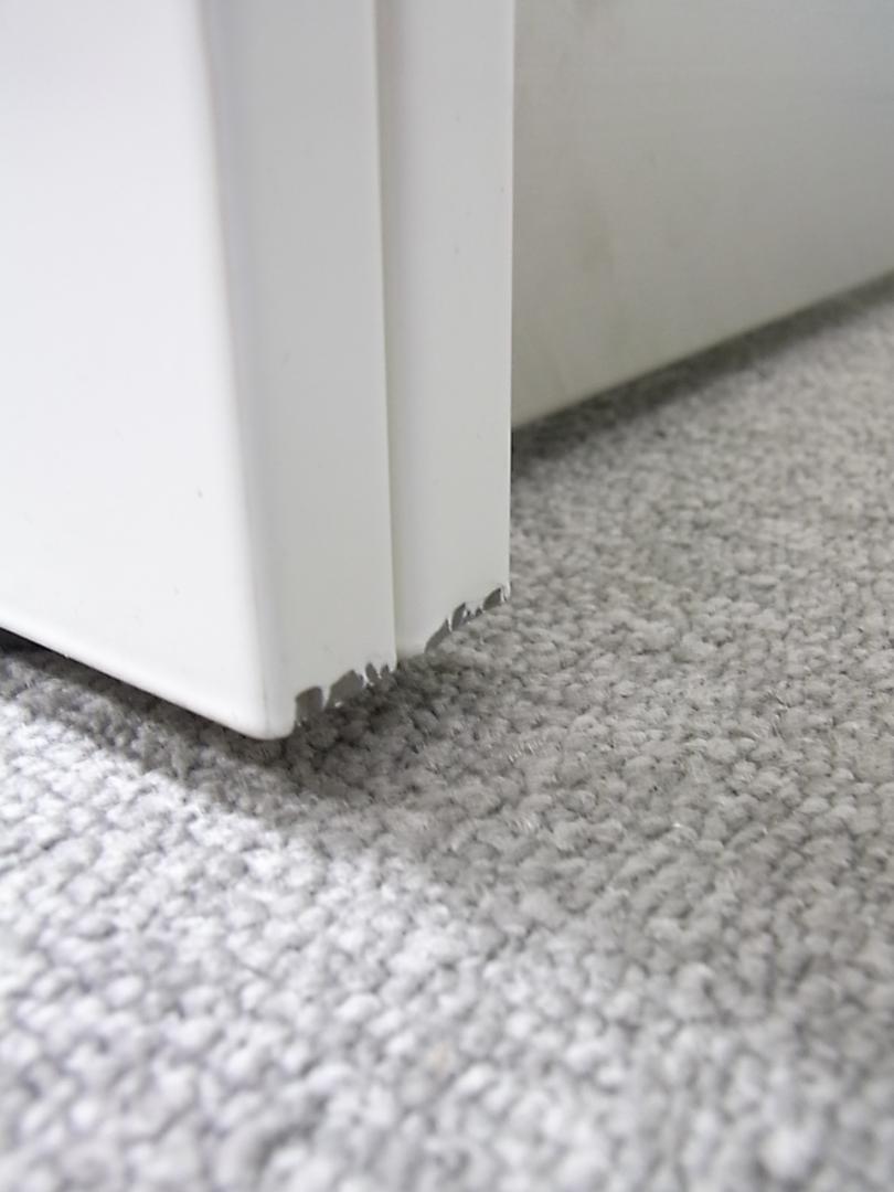 - 多数不具合あり天板歪み、引出開閉不可、アジャスター無し、施錠不可のようにそのカウンターの本来の効用を果たすための機能以外の多数が使用不可な状態。(例、引出が 開閉しづらい等がある。)
