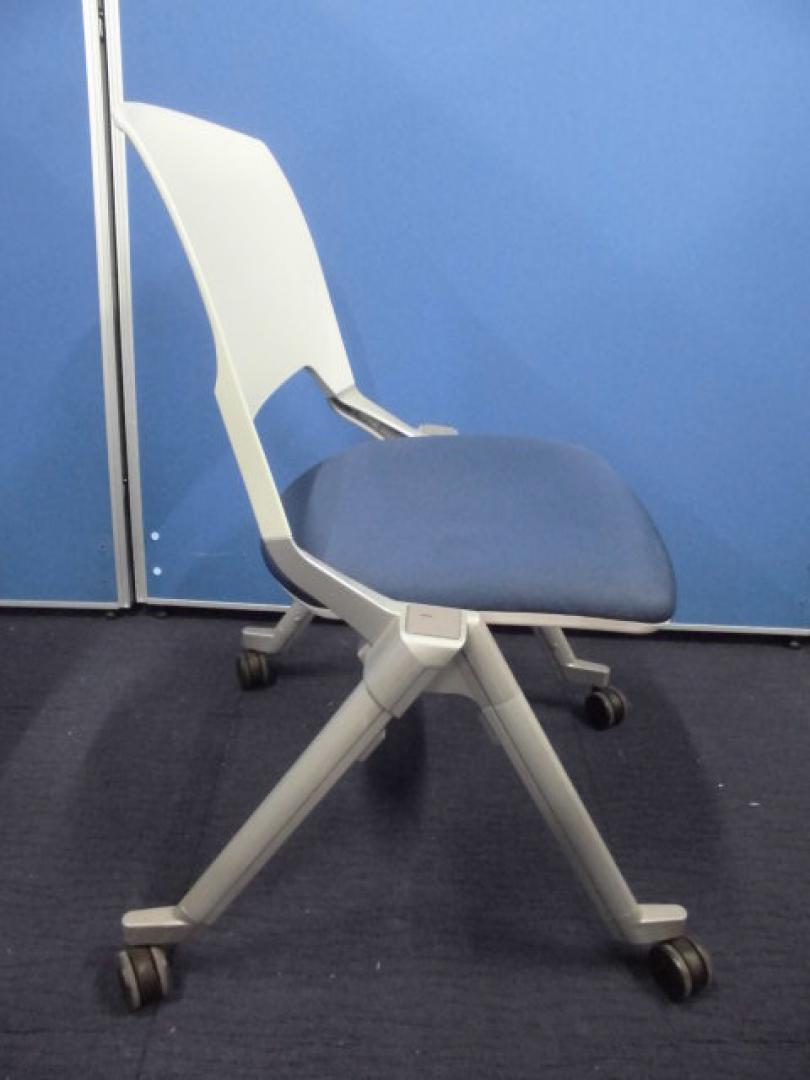 【ネスティング/スタッキング両用】ミーティングチェア|ブルー×ホワイト|キャスター付【オシャレデザイン】- 立川・八王子店