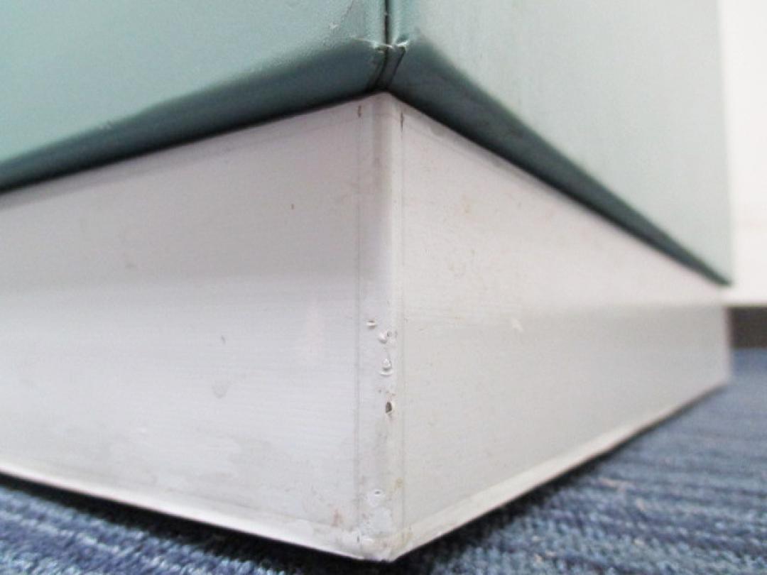 - 一部不具合あり天板歪み、引出開閉不可、アジャスター無し、施錠不可のようにそのカウンターの本来の効用を果たすための機能以外の一部が使用不可な状態。(例、引出が 開閉しづらい等がある。)