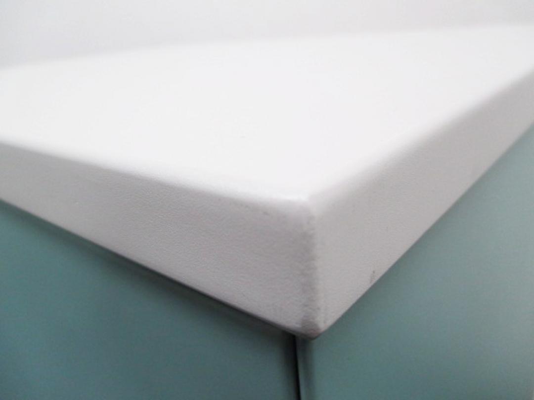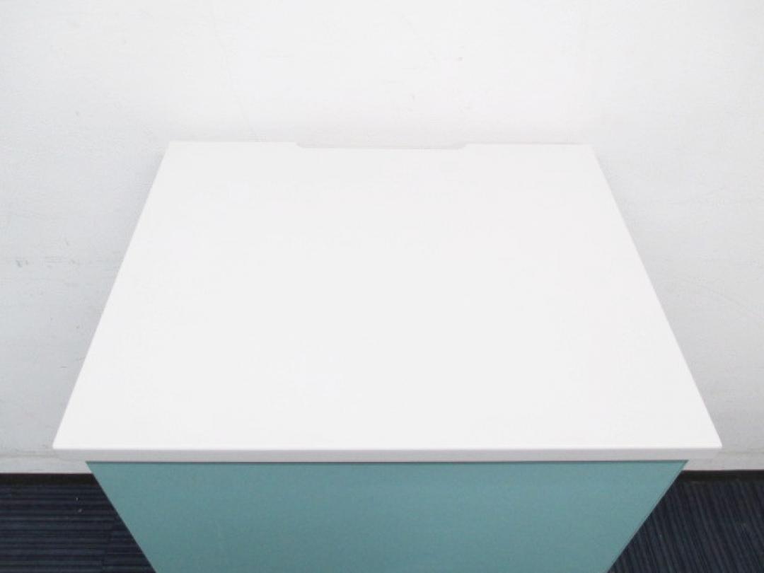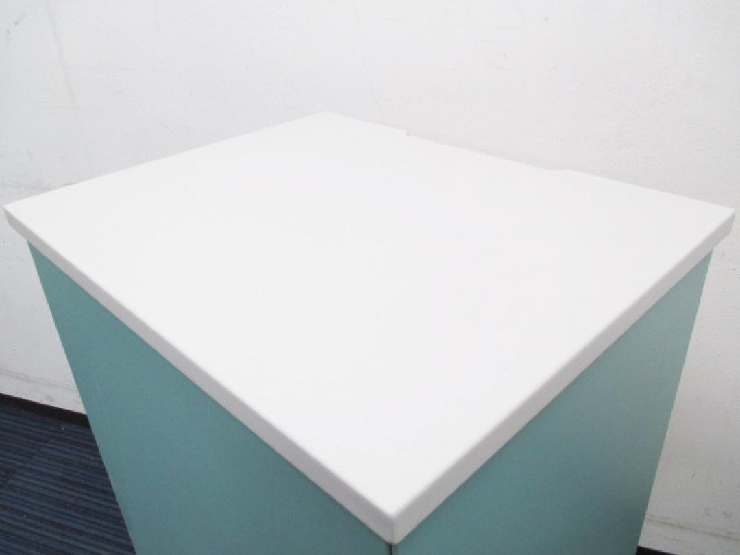 【受付用の電話置きです】インフォメーションカウンター|壁付しても電話線を通す部分が確保されています【書棚 キャビネット】【中古オフィス家具】- 日本橋店