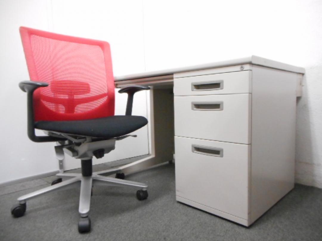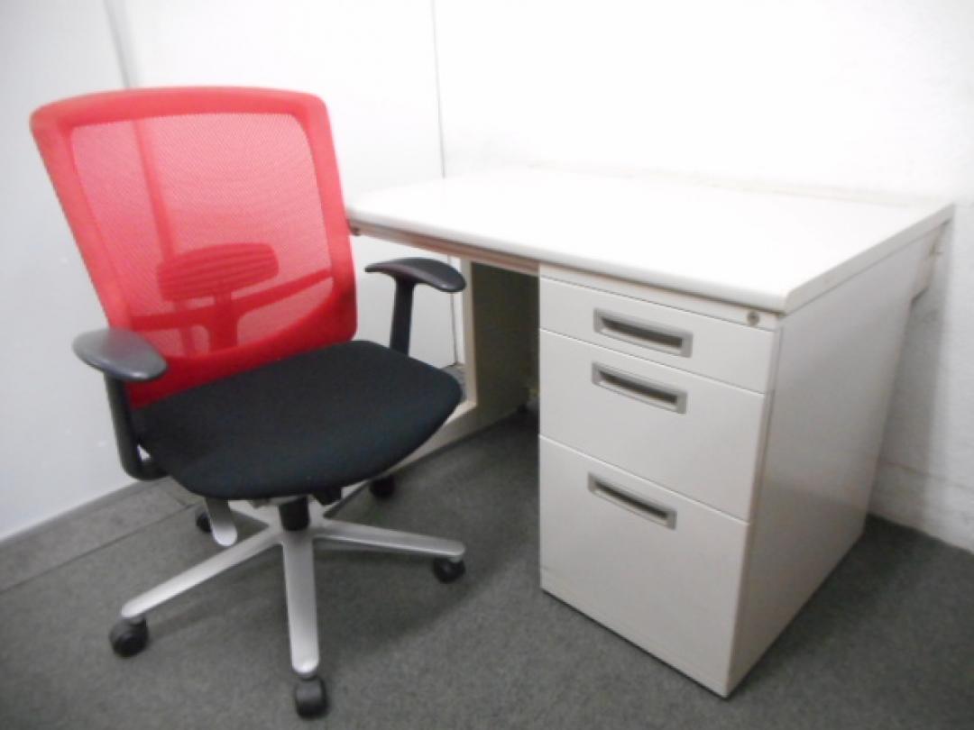 イナバの片袖デスク(W1000mmタイプ)とウチダの高級メッシュチェア、レジアがセットになってお買い得です!