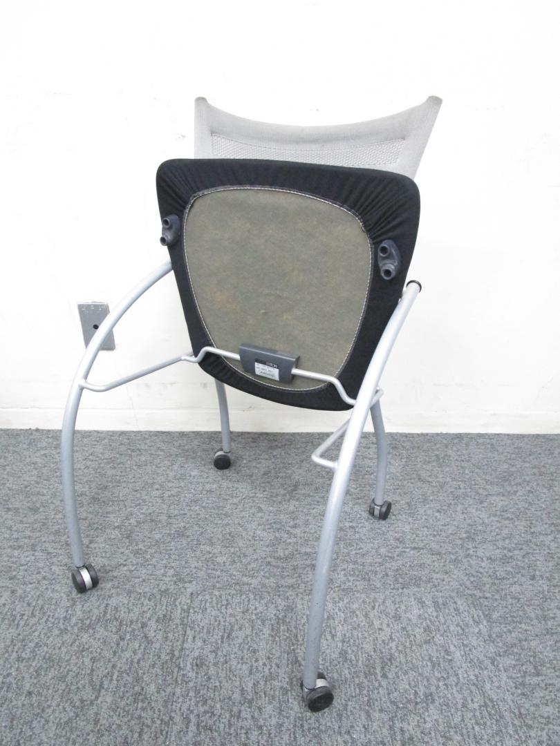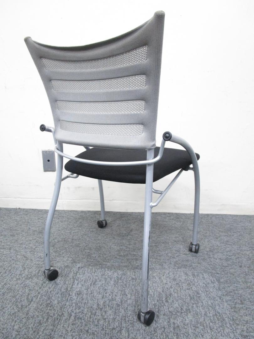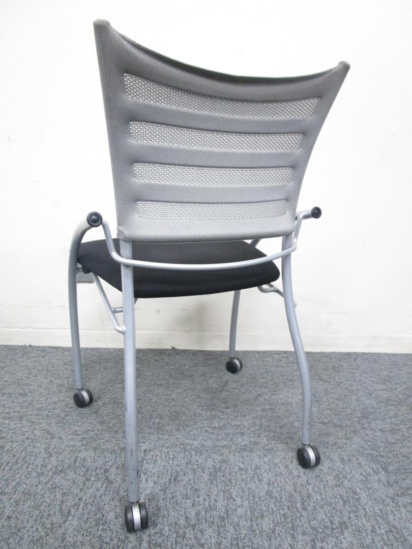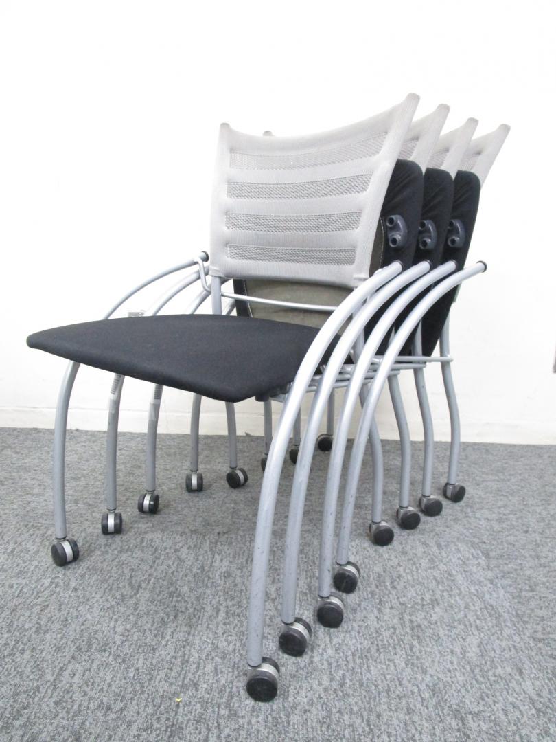 【ミーティング用ネスティングチェア】背:メッシュ キャスター付平行スタッキングチェア- 池袋店
