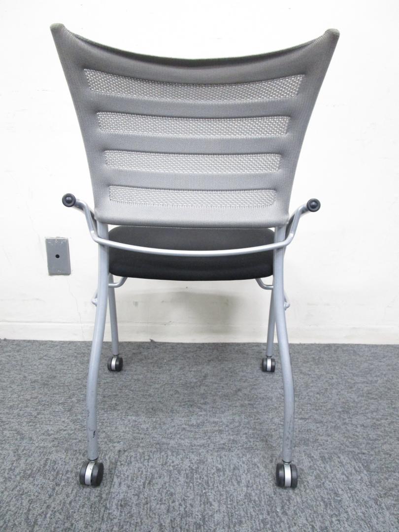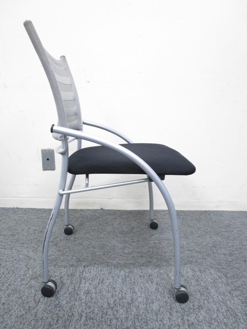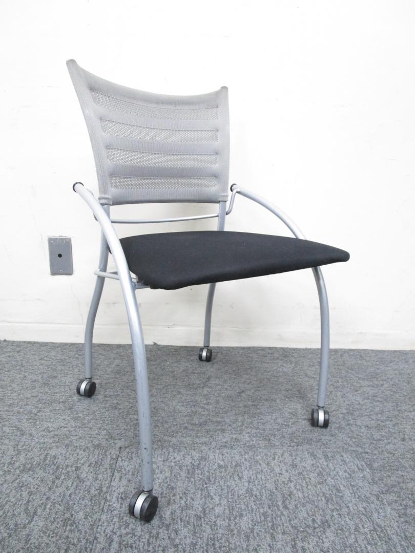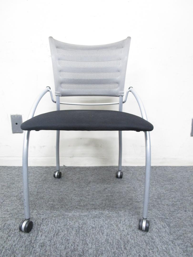 【ミーティング用ネスティングチェア】背:メッシュ キャスター付平行スタッキングチェア- 池袋店