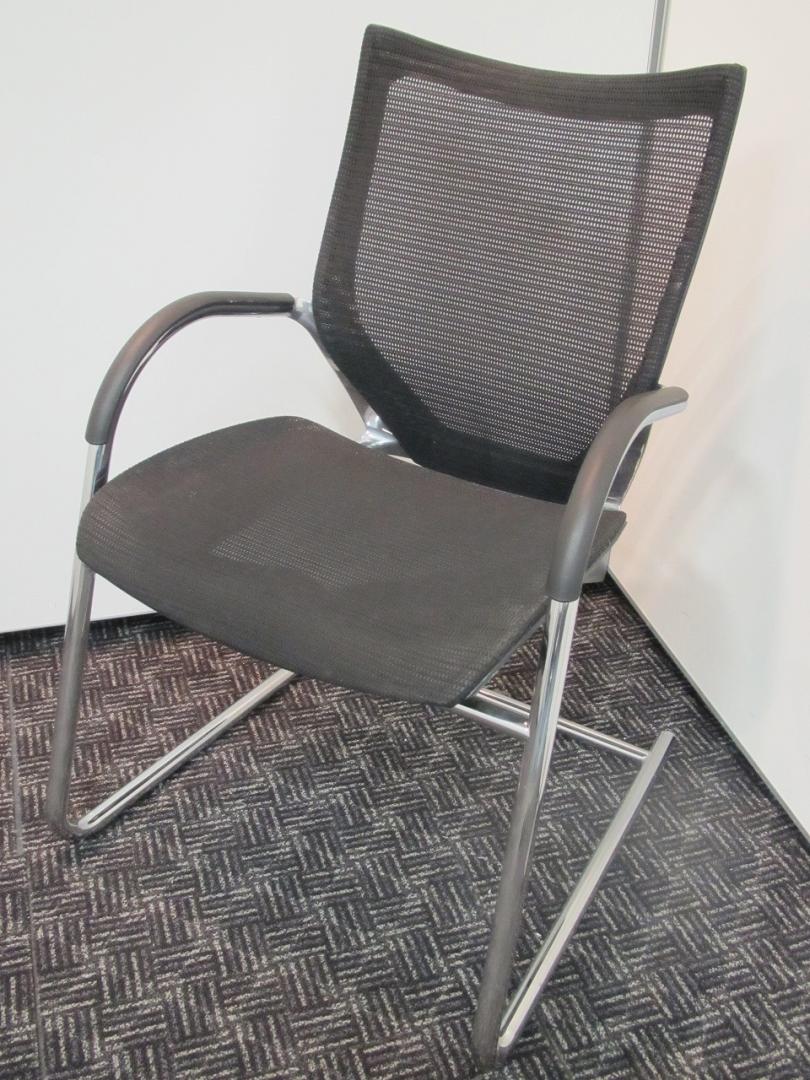 【在庫入替セール】オカムラ バロン ゲストチェア(ミーティングチェア) 背メッシュ×座クッション カンチレバー脚 ブラック×クロームメッキ