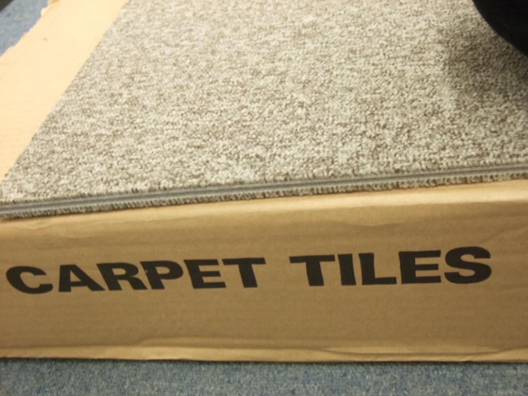 オフィス向けタイルカーペット、なんと新古品(未開封を撮影のため開けました)