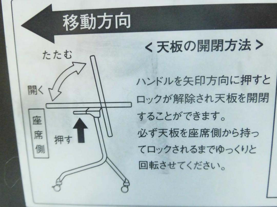 - 一部不具合あり天板歪み、アジャスター無し、キャスター使用不可ようなそのテーブルの本来の効用を果たすための機能以外の一部が使用不可な状態。(例、キャスターロッ ク機能使用不可、棚板無し等がある。)