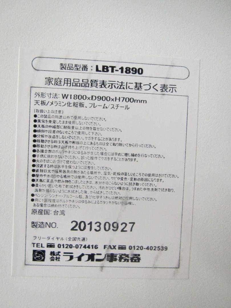【中古】 LBT-1890 ライオン ミーティングテーブル(会議机) 128432