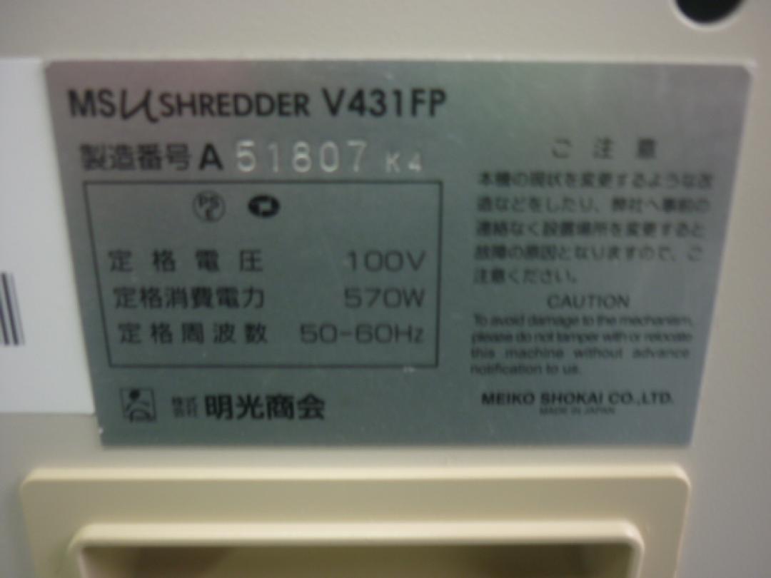 【中古】 MS-V431FP 明光商会 シュレッダー 128583