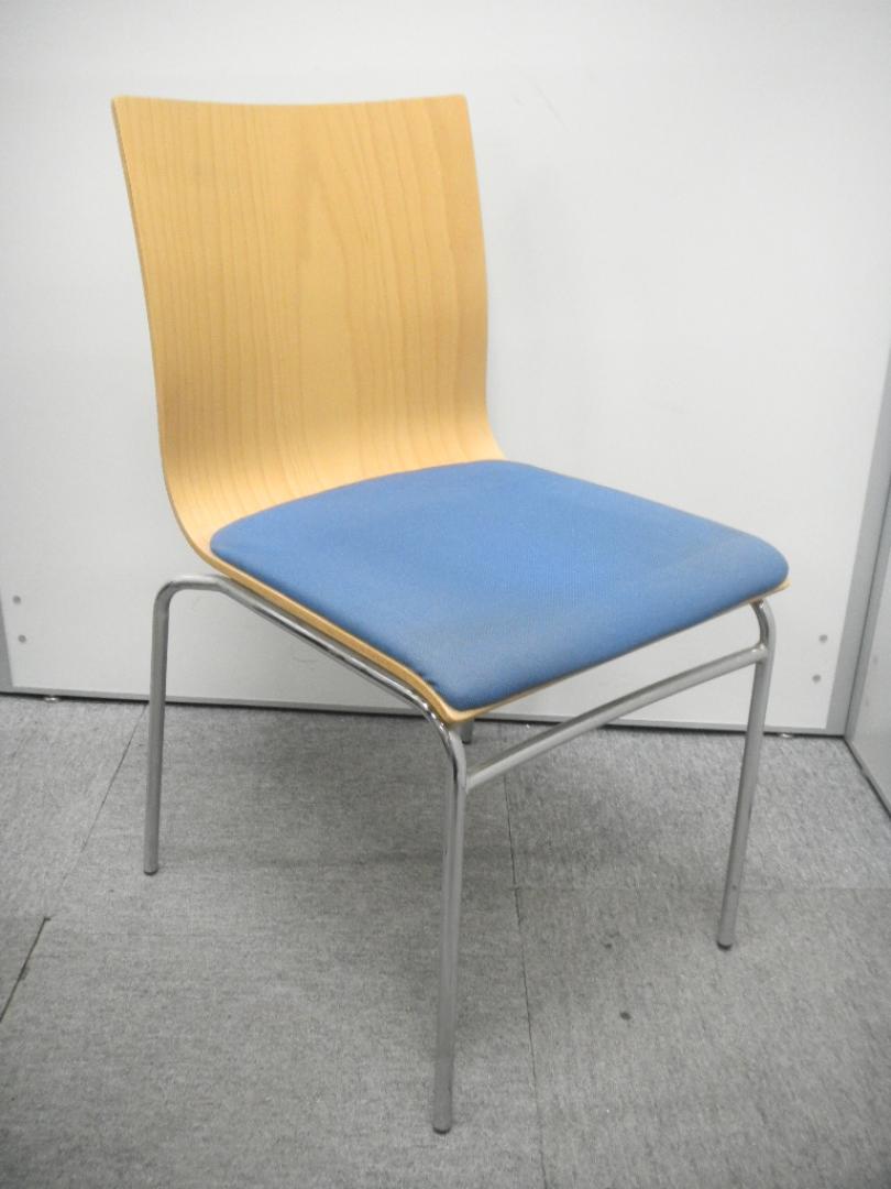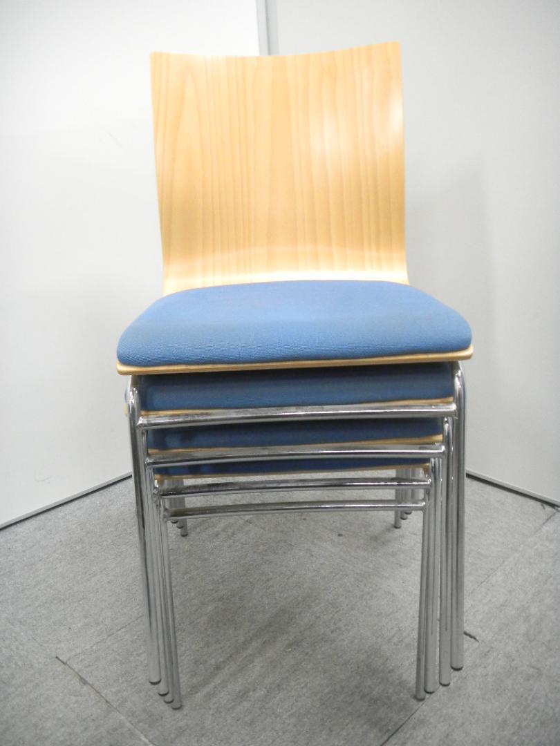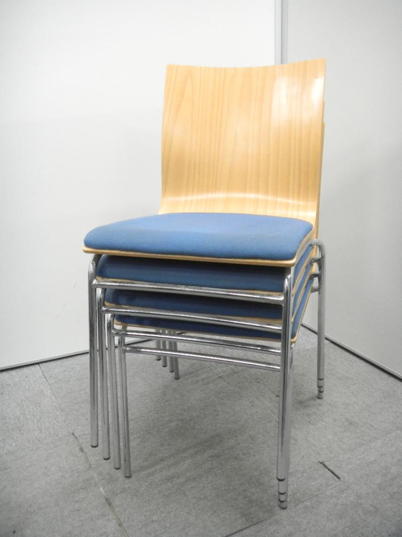 【会議用】珍しい木目とブルーの2トンカラーのスタッキングチェアです!- 在庫数