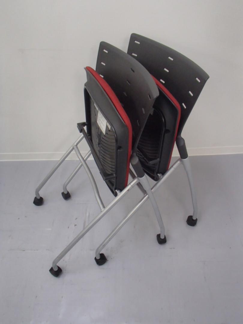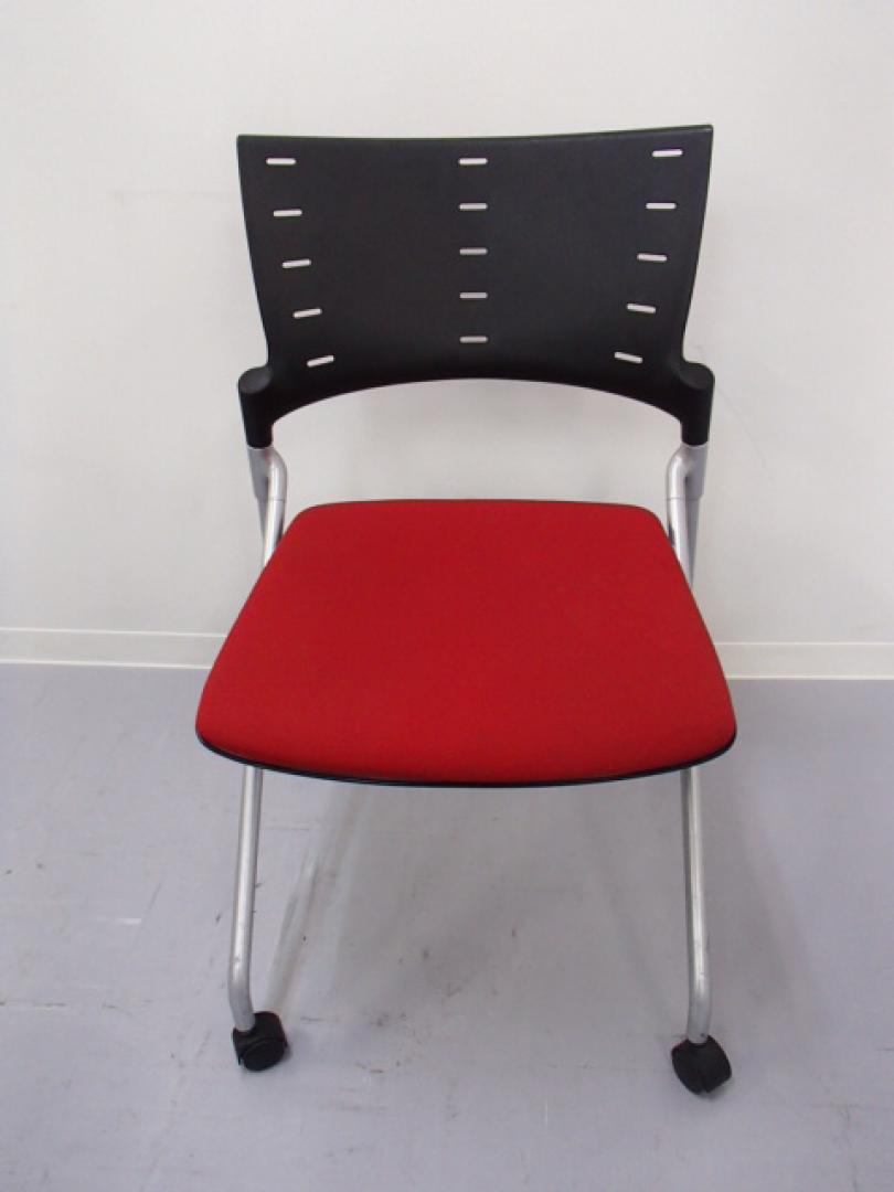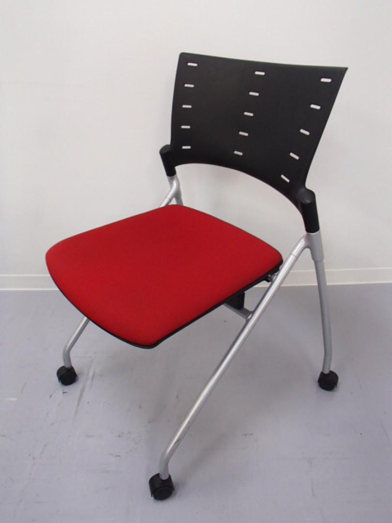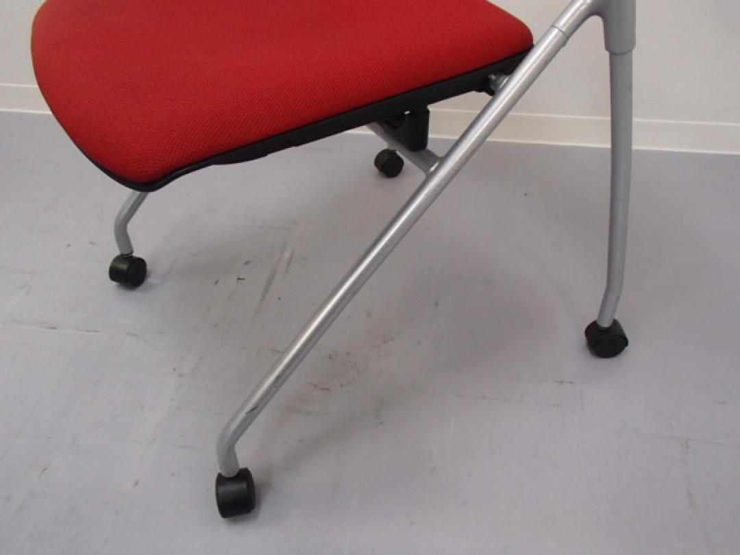 【祝!大阪・堺店オープン】|ネスティングチェア|レッド キャスター付き|ビビッドな色合いの座面と、少し変わったデザインが個性あるオフィスを演出するミーティングチェア!【2脚セット】- 大阪・堺店