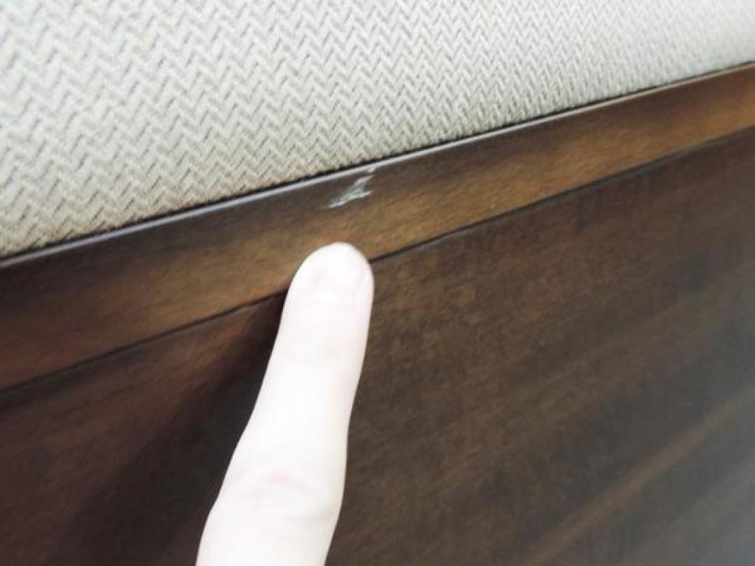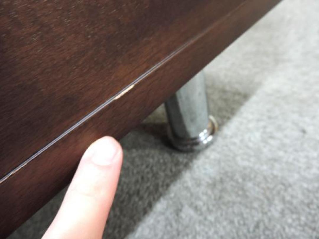 - かなり強い濃い黄ばみ・変色が商品全体にある。(例、座面・背もたれ、脚部等にある。)
