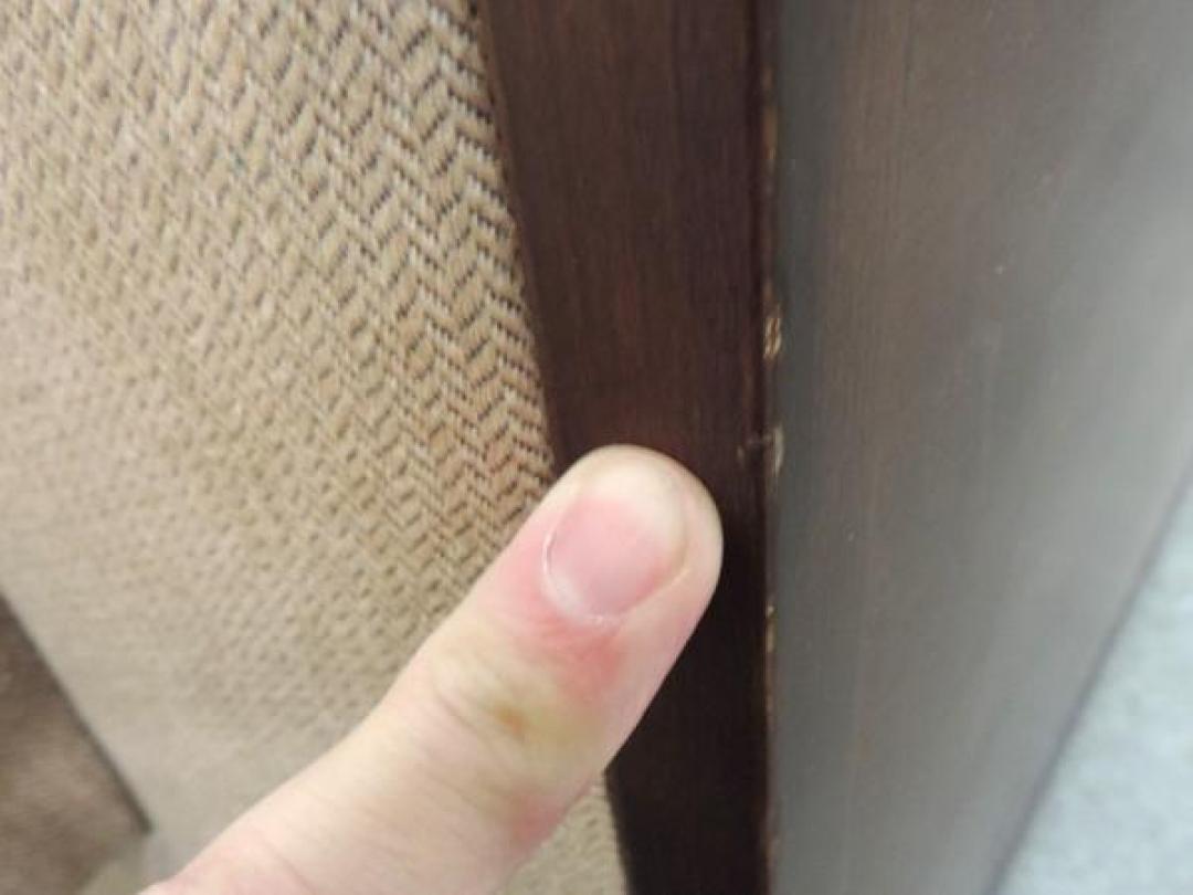 - あり黄ばみ・変色が広い範囲にうっすらある、または濃い黄ばみ・変色が一部ある。(例、座面・背もたれ、脚部等にある。)
