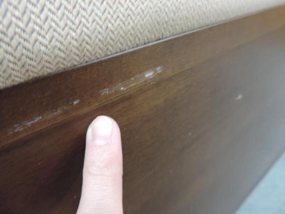 - かなり強い濃い黄ばみ・変色が商品全体にある。(例、座面・背もたれ、脚部等にある。)