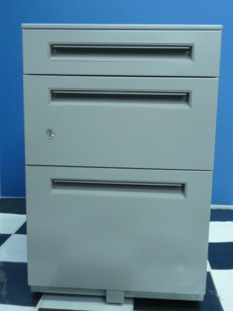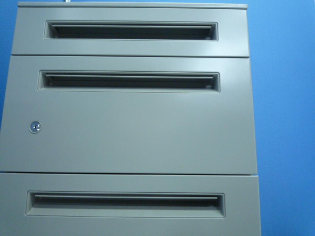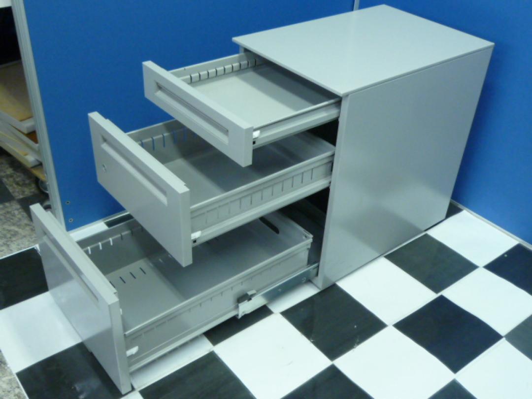 引き出しは1・2段目が備品やちょっとした書類入れ用。3段目がA4・B4ファイル収納可能です。