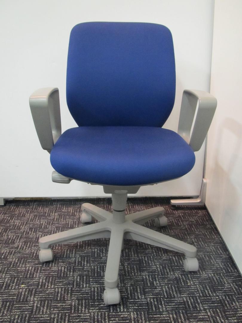 【A01002075】【体にフィットするダブルクッション構造!快適さと集中力をキープ!】■コクヨ(KOKUYO)製 セディスタチェア(SEDISTA) 肘付き ローバック ■ブルー ■サークル肘【IB】