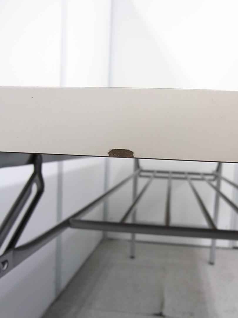 - 壊れている天板歪み、アジャスター無し、キャスター使用不可のようにそのテーブルの本来の効用を果たすための機能に不具合がある。
