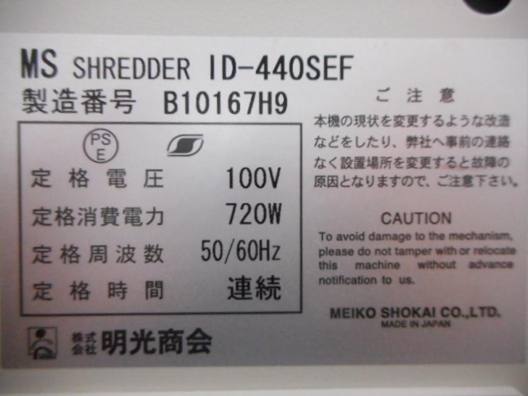 【中古】 MS-ID440SEF 明光商会 シュレッダー 129408