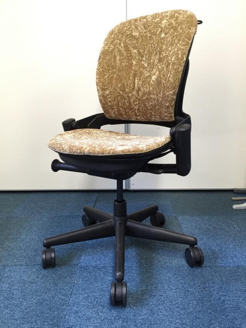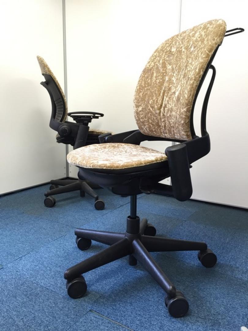 【おつとめ品】reapリープ HD-2【1点モノ!】生地貼り替えをしたオリジナルリープチェア 肘なしハイバックタイプ チンチラ生地ゴールド ※リクライニング時軋み音あり【高級チェア】※中古サーキュラーバリューCO2削減量の算出について