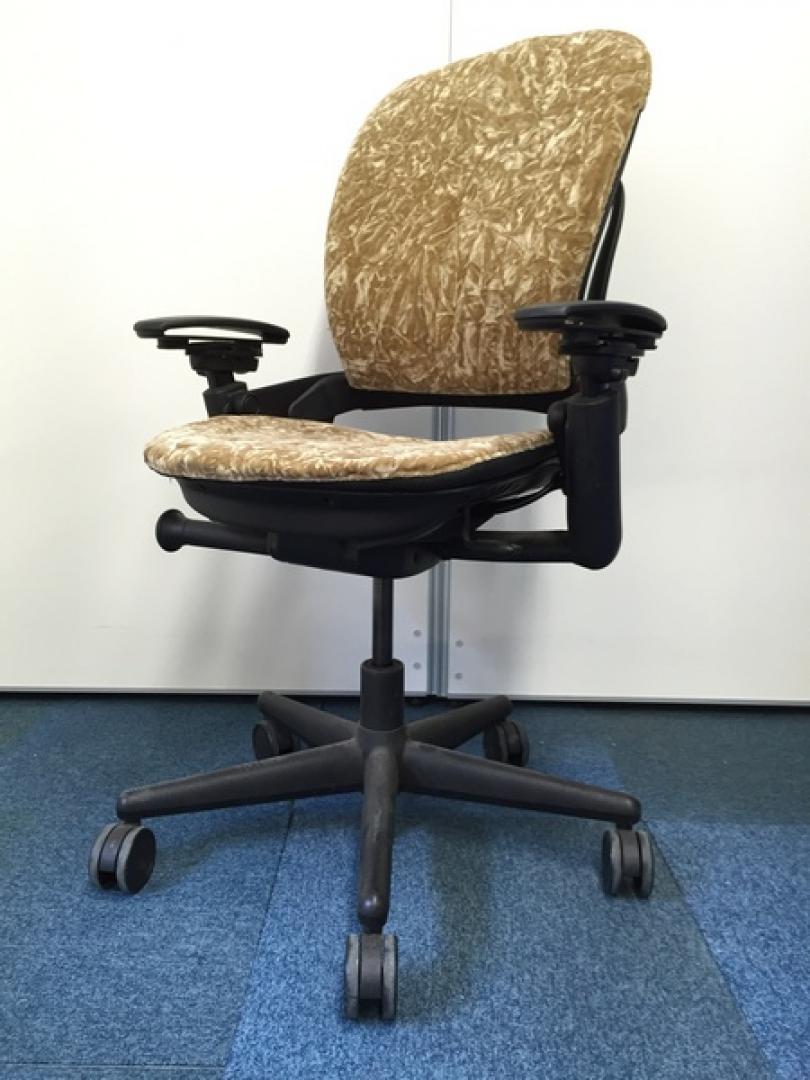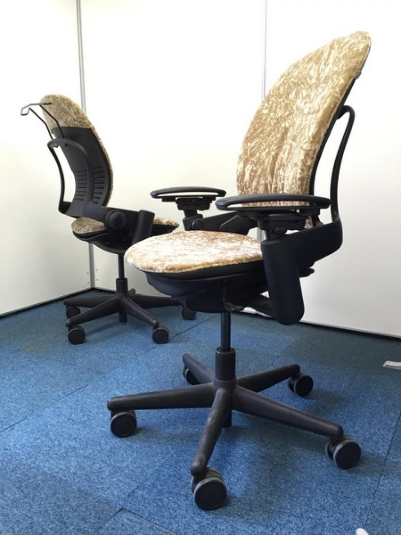【リメイクしたオリジナルチェア!】生地貼り替えをしたリープチェア 肘付きハイバックタイプ チンチラ生地ゴールド【高級チェア】※中古サーキュラーバリューCO2削減量の算出について