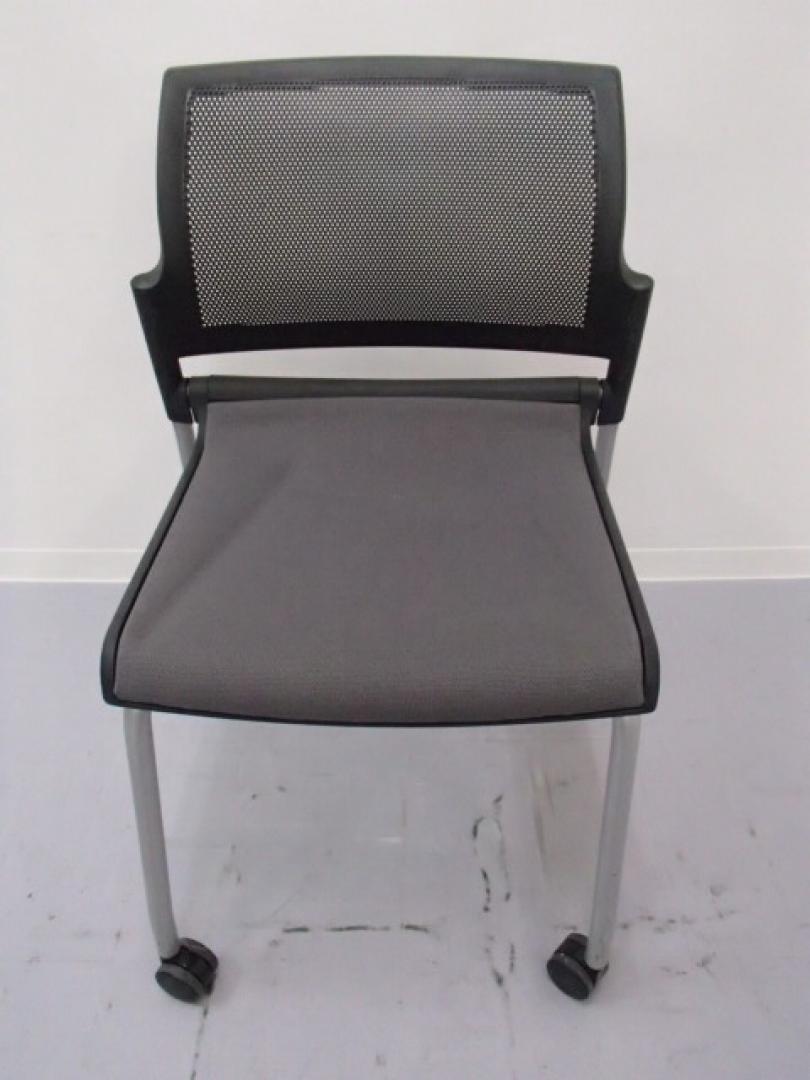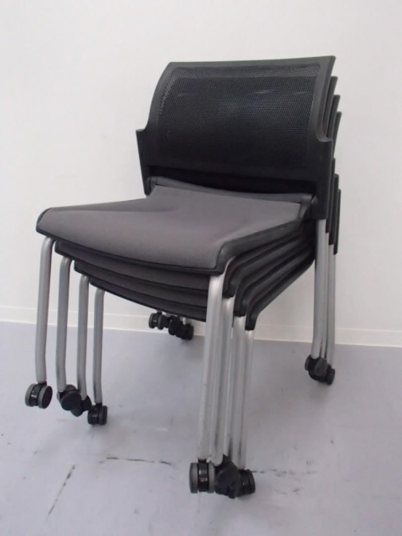 【祝!大阪・堺店オープン】|ミーティングチェア 内田洋行製|グレー色|キャスター付きで移動に便利で会議や研修に最適!収納時は折りたたんで簡単に収納できるミーティングチェア!!- 大阪・堺店