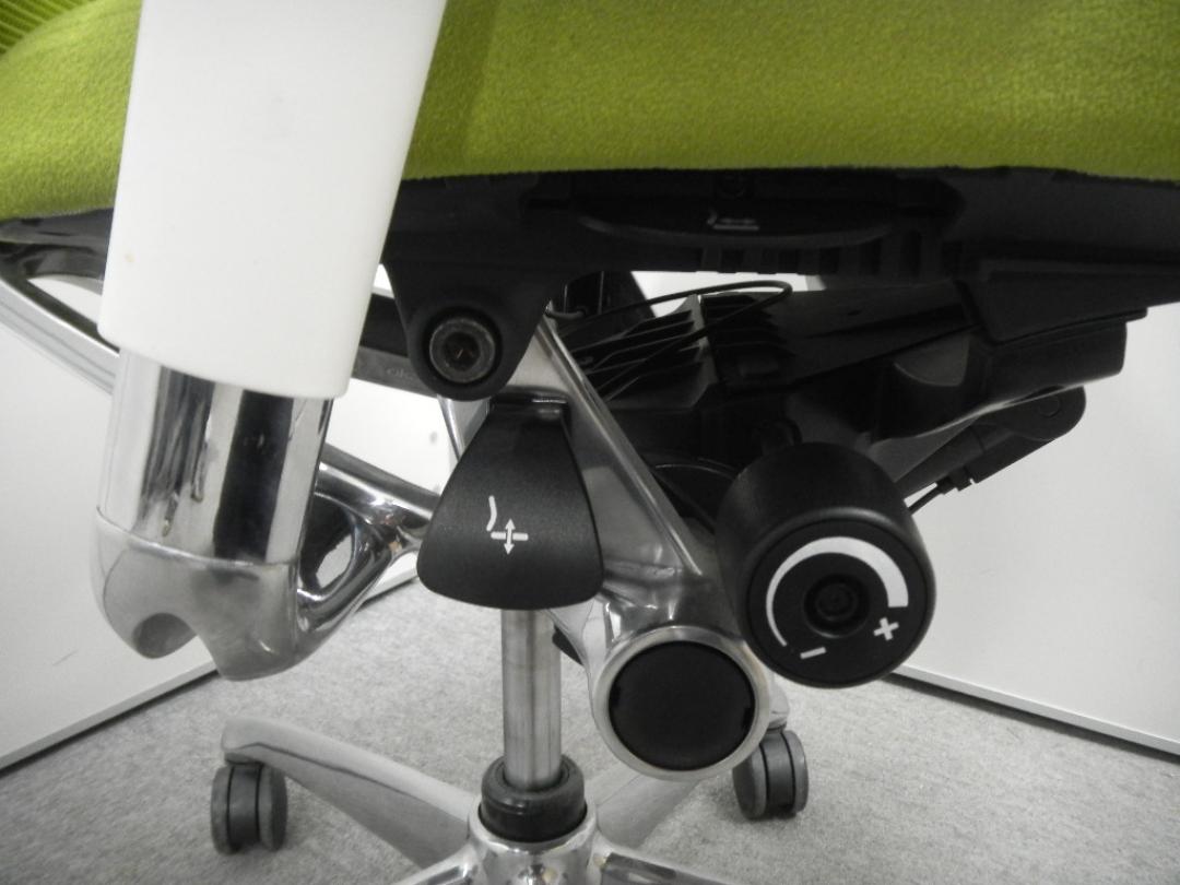 ③リクライニングの強弱調節~右手を座面下に下ろした位置にあるダイアルでお好みの強度に調節可能です!