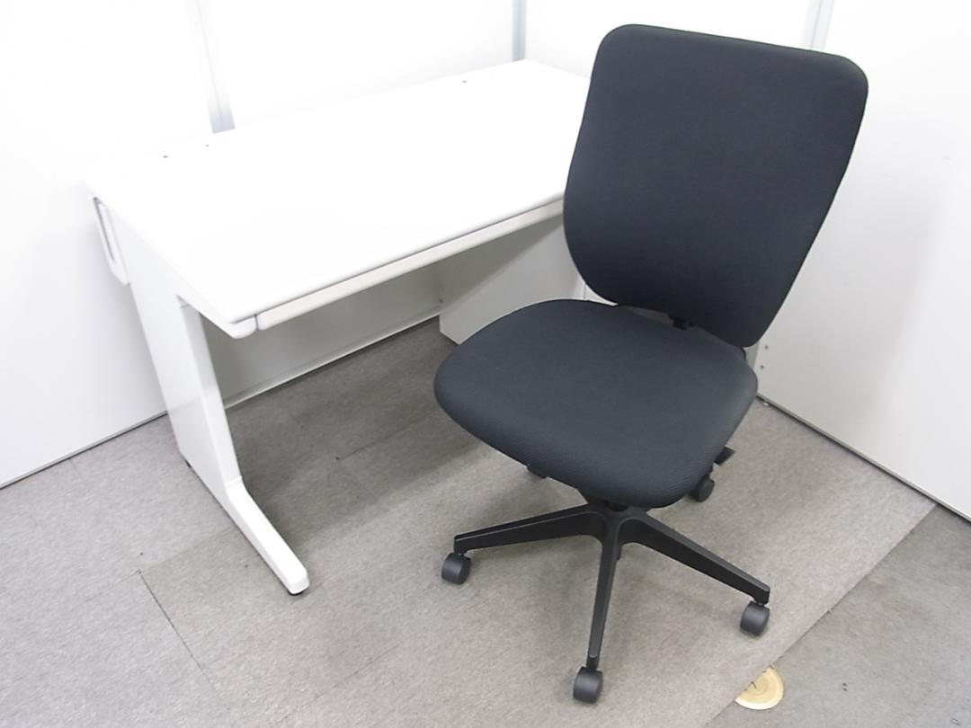 【セット商品】片袖机&肘無しチェア ■イトーキ製プラオチェア 定番のブラックカラー- 在庫数