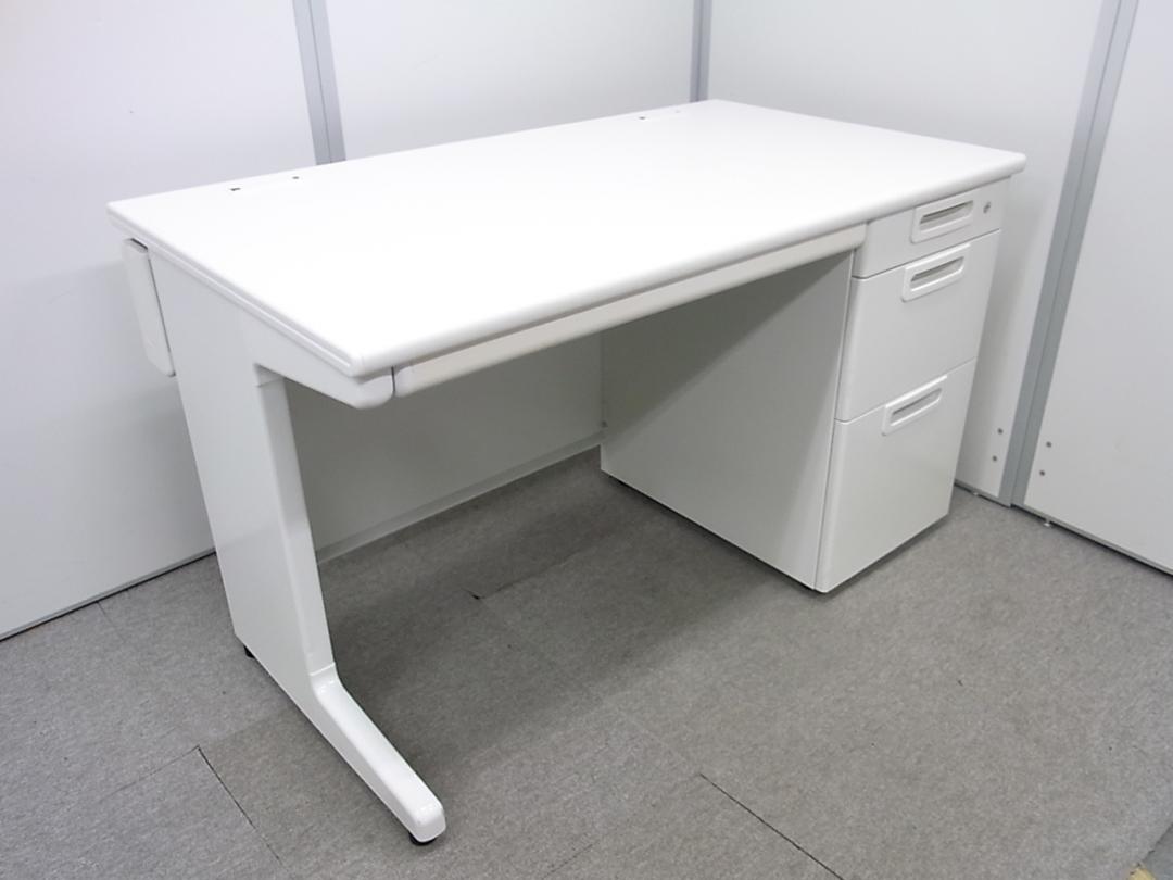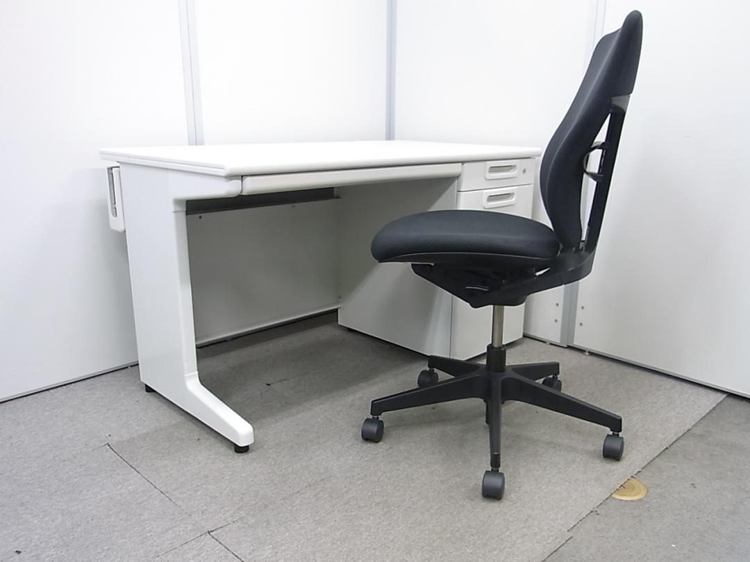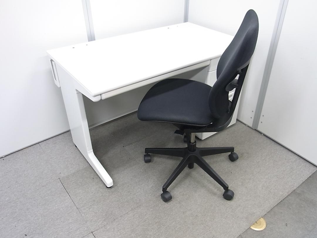 状態良好のホワイトの片袖机と人気の肘無しチェアの組み合わせ!