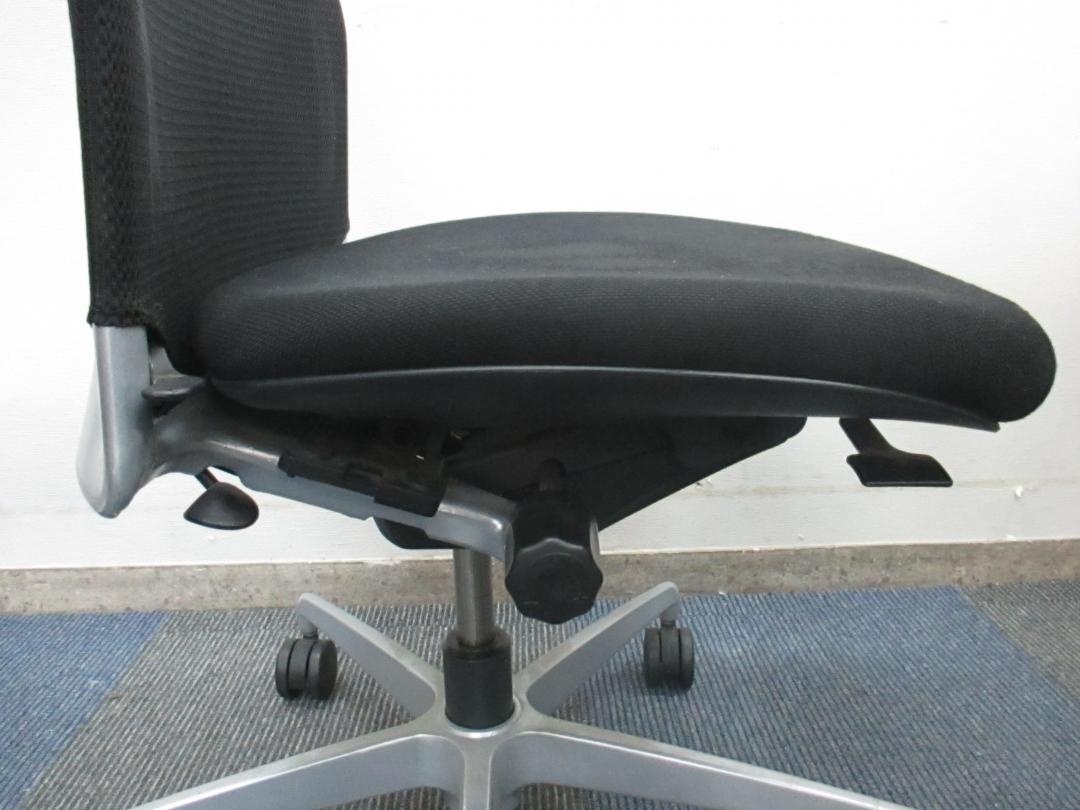 例えば、座面は、イトーキ独自の"ベンディングシート"という機構により、クッション、インターシェル、空洞という三層構造になっています。 この真ん中に挟まっているインナーシェルが、着座時の姿勢に合わせて体重を分散してくれるので、どんな姿勢でも体になじみ、疲労を軽減してくれます。 さらに、座面は前後に4センチほど奥行きを調整でき、前傾姿勢で座りたい、深く腰掛けたい、膝裏を圧迫されたくないなど、個人の好みに合った快適さにカスタマイズが可能となっています。