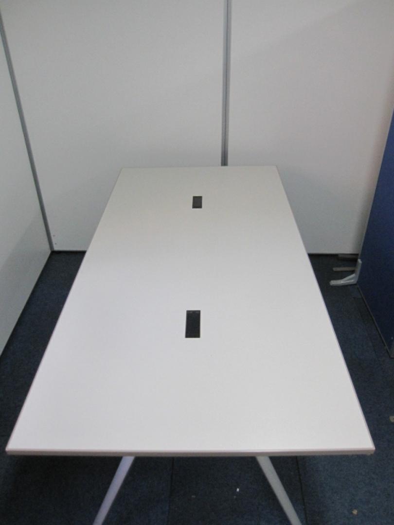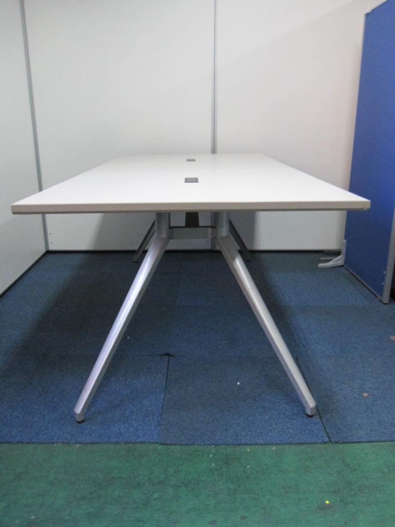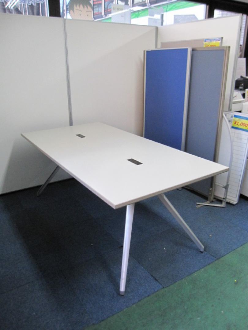 【ミーティングテーブル】脚部のフレーム形状がオシャレ 配線穴も有り ホワイト【会議テーブル】- 品川・三田店