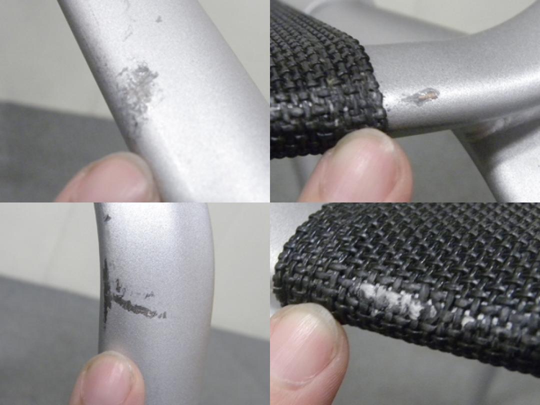 - 目立つ箇所あり傷・破れ・ほつれ・へたり・しわが多数または深い傷・破れ・ほつれ・へたり・しわが一部ある。※座面・背もたれ、シェル、脚部等にある。