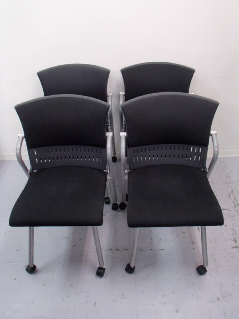 【祝!大阪・堺店オープン】|ミーティングチェア|4脚セット ブラック色|キャスター付きで移動に便利で会議や研修に最適!【セット商品】- 大阪・堺店